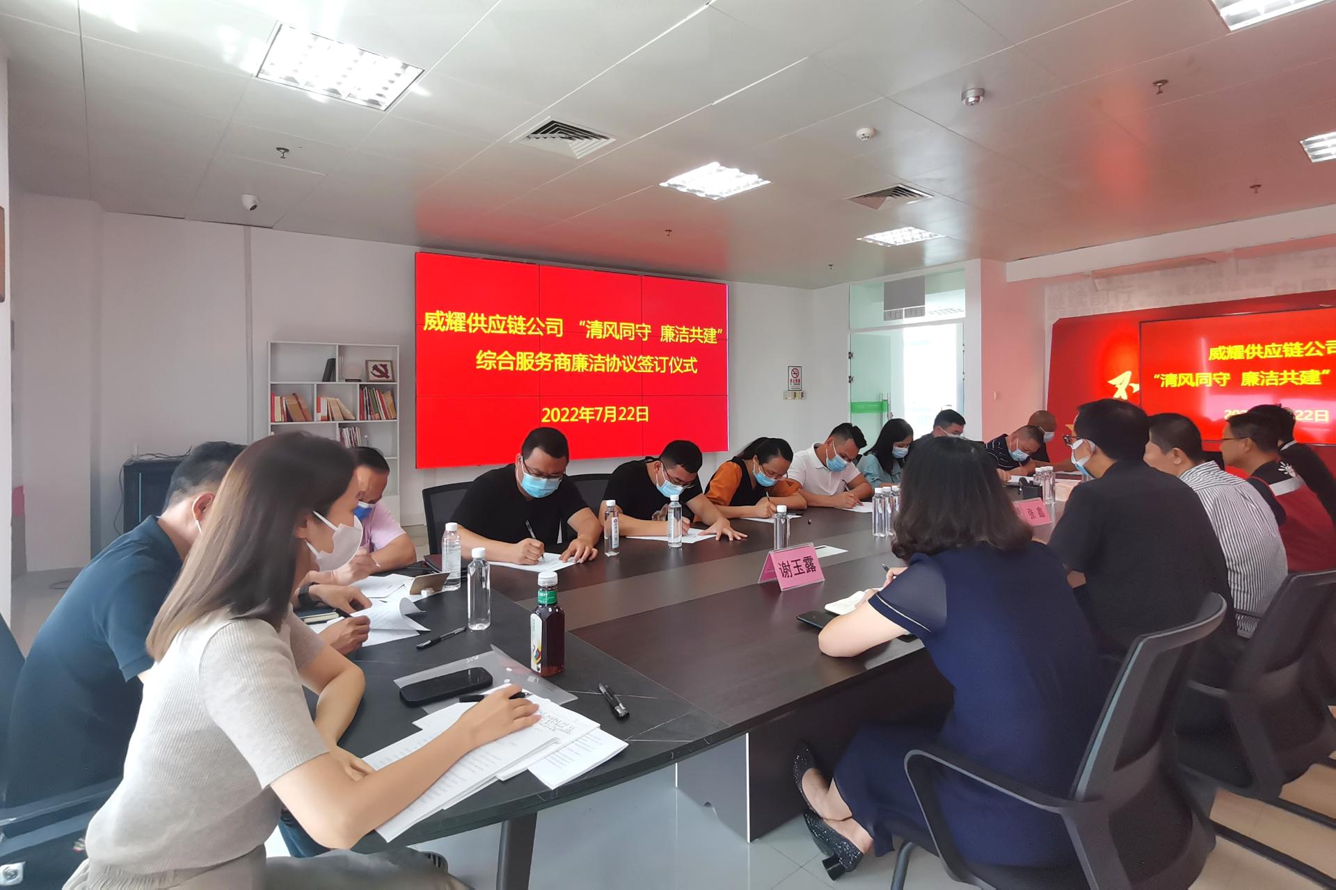 發(fā)布時間:2022-08-02威耀供應(yīng)鏈公司召開綜合服務(wù)商廉潔建設(shè)專題會議組織簽訂廉潔協(xié)議