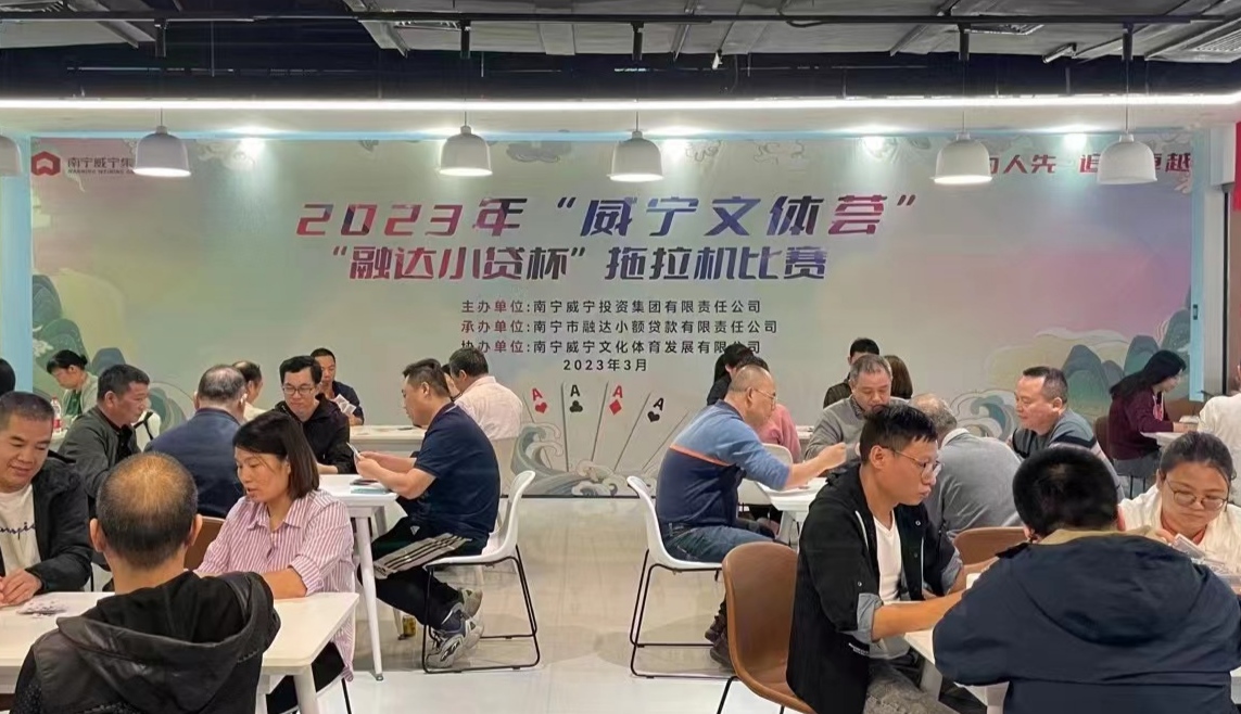 ??“棋牌文化聚同心,民族團(tuán)結(jié)樂融融”。為進(jìn)一步豐富員工的業(yè)余生活,增進(jìn)集團(tuán)員工的凝聚力,營造團(tuán)結(jié)和諧融洽的工作環(huán)境,3月11日,由南寧威寧集團(tuán)主辦、融達(dá)小貸公司承辦、威寧文體公司協(xié)辦的2023年威寧文體薈“融達(dá)小貸杯”拖拉機(jī)比賽在威寧總部大廈優(yōu)食智谷餐廳熱火朝天地拉開了序幕,此次比賽吸引了來自威寧集團(tuán)系統(tǒng)內(nèi)百余名選手參加比賽,現(xiàn)場氣氛“嗨”不停!上午9時(shí),隨著裁判員的一聲令下,共有18桌牌局同...