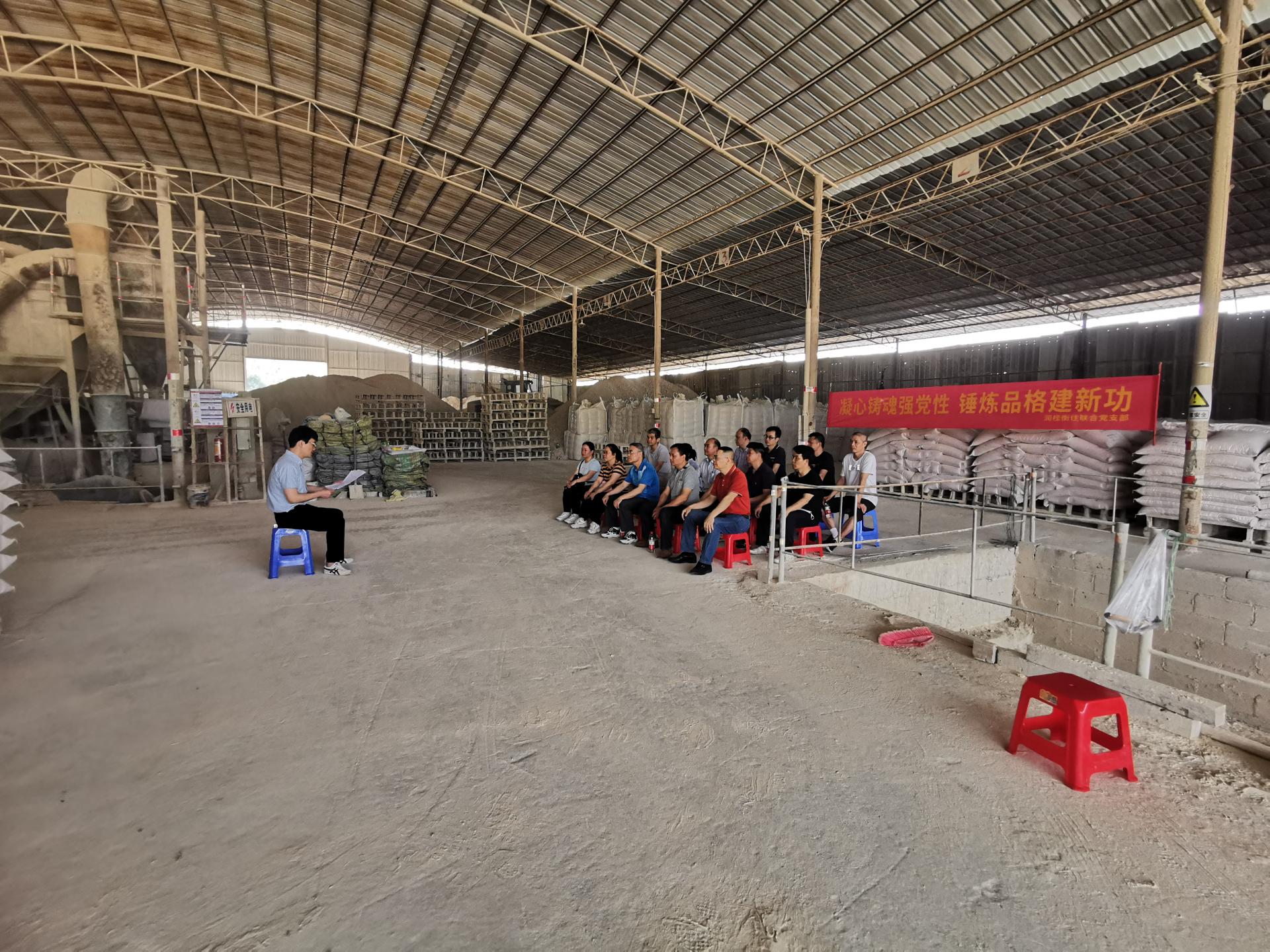 為強化公司黨建引領作用,深入推進黨建與生產工作緊密融合,近日,威潤聯(lián)合黨支部到桂泥公司經(jīng)營場所——壇淋加工廠上了一堂別開生面的現(xiàn)場黨課。在離市區(qū)幾十公里外的壇淋加工廠廠房內,公司黨員和礦產經(jīng)營部員工通力合作,拉橫幅、搬凳子、清理場地,很快在生產車間搭起了“接地氣”的臨時黨課學堂。威潤工貿公司聯(lián)合黨支部委員、副總...