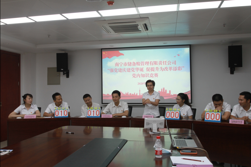 2020年7月1日下午,南寧市儲備糧公司開展慶“七一”黨內(nèi)知識競賽活動,以賽促學(xué)、學(xué)以致用,推動企業(yè)改革發(fā)展。