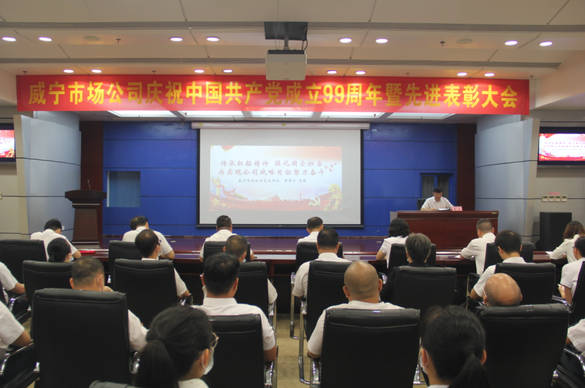 紅色七月,黨旗飄飄。為慶祝中國共產(chǎn)黨成立99周年, 7月1日,威寧市場公司召開慶祝中國共產(chǎn)黨成立99周年暨先進(jìn)表彰大會,共同回顧建黨99年來的光輝歷程,表彰近年來公司涌現(xiàn)出的先進(jìn)基層黨組織、優(yōu)秀共產(chǎn)黨員和黨務(wù)工作者。