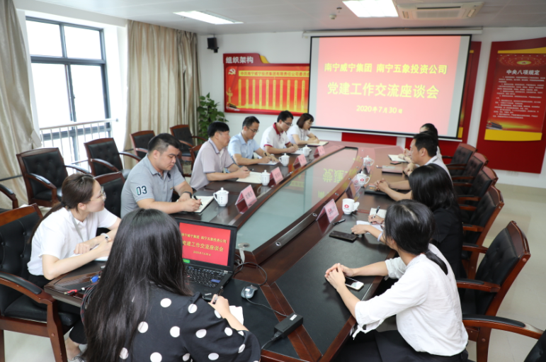 2020年7月30日,南寧五象投資公司黨委副書記凌鴻翔一行到南寧威寧集團(tuán)進(jìn)行黨建工作交流,集團(tuán)黨委副書記馬超毅參加了座談交流。
