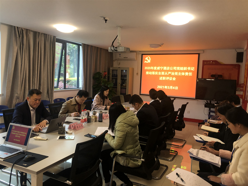 會議現(xiàn)場2021年3月4日上午,威寧酒店公司召開2020年度基層黨組織書記落實全面從嚴治黨主體責(zé)任述職評議會,集團副總經(jīng)理、威寧酒店公司黨委書記朱海主持會議,并作點評發(fā)言和總結(jié)講話。會上,威寧酒店公司黨委下屬4個黨支部書記結(jié)合工作實際,圍繞2020年度黨建、黨風(fēng)廉政建設(shè)和意識形態(tài)工作取得的成績、存在的問題和下一步工作措施進行現(xiàn)場述職。朱海對現(xiàn)場述職的支部書記進行了逐一點評,肯定了工作成效,提出了突