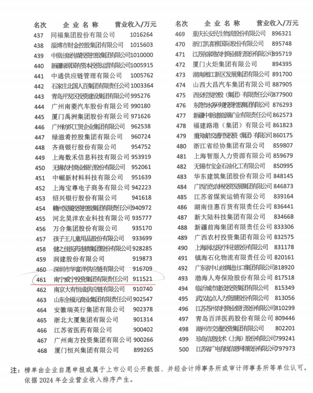近日,中國(guó)企業(yè)聯(lián)合會(huì)、中國(guó)企業(yè)家協(xié)會(huì)發(fā)布了“2025中國(guó)服務(wù)業(yè)企業(yè)500強(qiáng)”榜單,南寧威寧集團(tuán)再度榮登該榜單,位列第461位,較上一年排名上升16位,成為唯一一家連續(xù)十年上榜中國(guó)服務(wù)業(yè)企業(yè)500強(qiáng)的南寧市屬國(guó)有企業(yè),充分彰顯了集團(tuán)持續(xù)穩(wěn)健的發(fā)展實(shí)力與區(qū)域服務(wù)業(yè)中的領(lǐng)先地位?!爸袊?guó)服務(wù)業(yè)企業(yè)500強(qiáng)”榜單由中國(guó)企業(yè)聯(lián)合會(huì)、中國(guó)企業(yè)家協(xié)會(huì)在“中國(guó)企業(yè)500強(qiáng)”基礎(chǔ)上,參照國(guó)際通行評(píng)價(jià)體系,已連續(xù)20年向社會(huì)公開(kāi)發(fā)布,是衡...