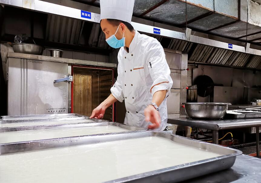 自鄉(xiāng)村大世界被明確為南寧市新型冠狀病毒肺炎密切接觸者觀察點(diǎn)以來(lái),鄉(xiāng)村大世界全體員工都堅(jiān)守在自己的崗位上,默默奉獻(xiàn)著自己的一份力量。想著盒飯如何搭配更營(yíng)養(yǎng)、變花樣地烹飪美味飯菜、心靈手巧設(shè)計(jì)打包盒……這些都是掌勺廚師們的日常。他們忙碌的身影里,有那么一個(gè)人,他總是在得閑的時(shí)候,跟在衛(wèi)監(jiān)工作人員、醫(yī)生身后,仔細(xì)了解觀察點(diǎn)工作進(jìn)展,溝通客人餐飲需求,他就是鄉(xiāng)村大世界的廚師長(zhǎng)——李勇其。