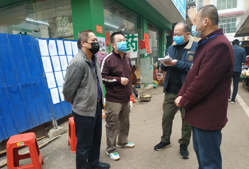 2020年2月19日,南寧威寧集團(tuán)紀(jì)委書記韋登香、副總經(jīng)理黎鎮(zhèn)宇一行深入威寧市場(chǎng)公司經(jīng)營(yíng)管理的那樓新街市場(chǎng)、新江農(nóng)貿(mào)市場(chǎng)、百濟(jì)農(nóng)貿(mào)市場(chǎng)開展新冠疫情防控和安全生產(chǎn)工作檢查,強(qiáng)調(diào)農(nóng)貿(mào)市場(chǎng)疫情防控和安全生產(chǎn)并重,要兩手抓兩不誤。