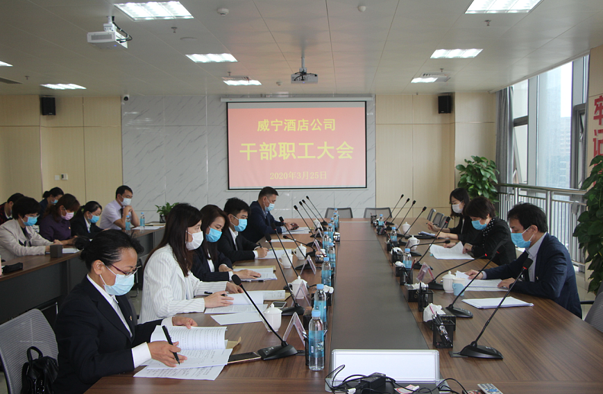 2020年3月25日,威寧酒店公司召開干部職工大會,對公司領(lǐng)導(dǎo)班子和領(lǐng)導(dǎo)人員2019年度工作進(jìn)行考核。集團(tuán)黨委副書記、總經(jīng)理劉巧瑛到會指導(dǎo)。