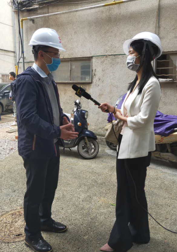 廣西電視臺記者對老舊小區(qū)改造工作進(jìn)行采訪