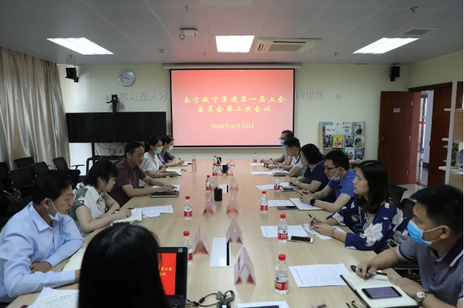 2020年6月12日,南寧威寧集團召開第一屆工會委員會第二次會議,研究部署年度工會重點工作。會議由集團黨委副書記、工會主席馬超毅主持,集團全體工會委員參加會議。