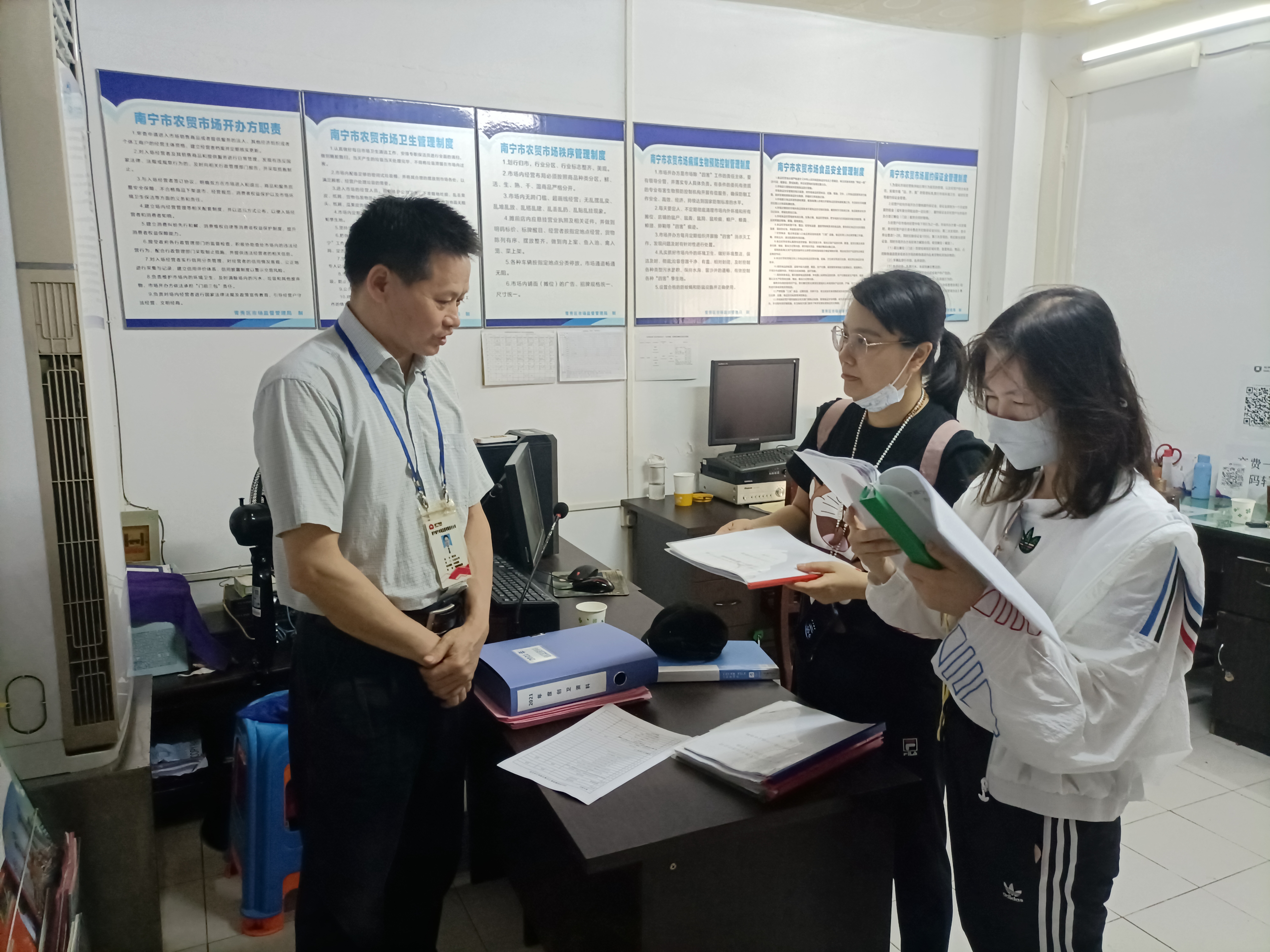 督查現(xiàn)場2021年5月28日下午,南寧威寧集團黨委副書記馬超毅帶隊到威寧市場公司經(jīng)營管理的星湖農(nóng)貿(mào)市場開展創(chuàng)“雙城”指導(dǎo)檢查。檢查中,馬超毅實地查看了市場公益廣告設(shè)置、宣傳氛圍營造、市場巡查管理、垃圾分類、創(chuàng)“雙城”工作臺賬及相關(guān)制度公示等工作。馬超毅對星湖農(nóng)貿(mào)市場創(chuàng)“雙城”工作開展及市場衛(wèi)生情況給予肯定。他強調(diào),威寧市場公司要繼續(xù)保持良好的工作干勁,全面鞏固綜合治理成果,加強市場保潔,嚴格對標對