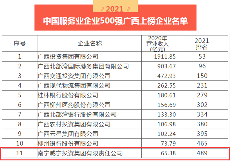 集團要聞丨南寧威寧集團榮登2021年廣西100強企業(yè)榜單