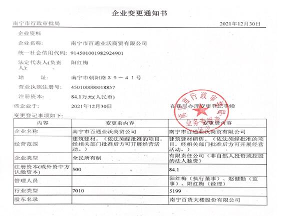 百通業(yè)沃公司改制新公司設(shè)立近日,南寧威寧集團(tuán)通過專項(xiàng)隊(duì)伍組建、改制任務(wù)梳理、難點(diǎn)各個(gè)擊破等“三步走”的方式,成功克服時(shí)間緊任務(wù)重的困難,僅用44天即順利完成南寧市百通業(yè)沃商貿(mào)公司(以下簡(jiǎn)稱百通業(yè)沃公司)公司化改革工作,較正常流程提前5個(gè)月左右,不僅在集團(tuán)全民所有制企業(yè)改革工作中再下一城,還為打贏2022年國(guó)企改革三年行動(dòng)收官戰(zhàn)奠定了堅(jiān)實(shí)的基礎(chǔ)。全民所有制企業(yè)改革工作是國(guó)企改革三年行動(dòng)重點(diǎn)工作之一,