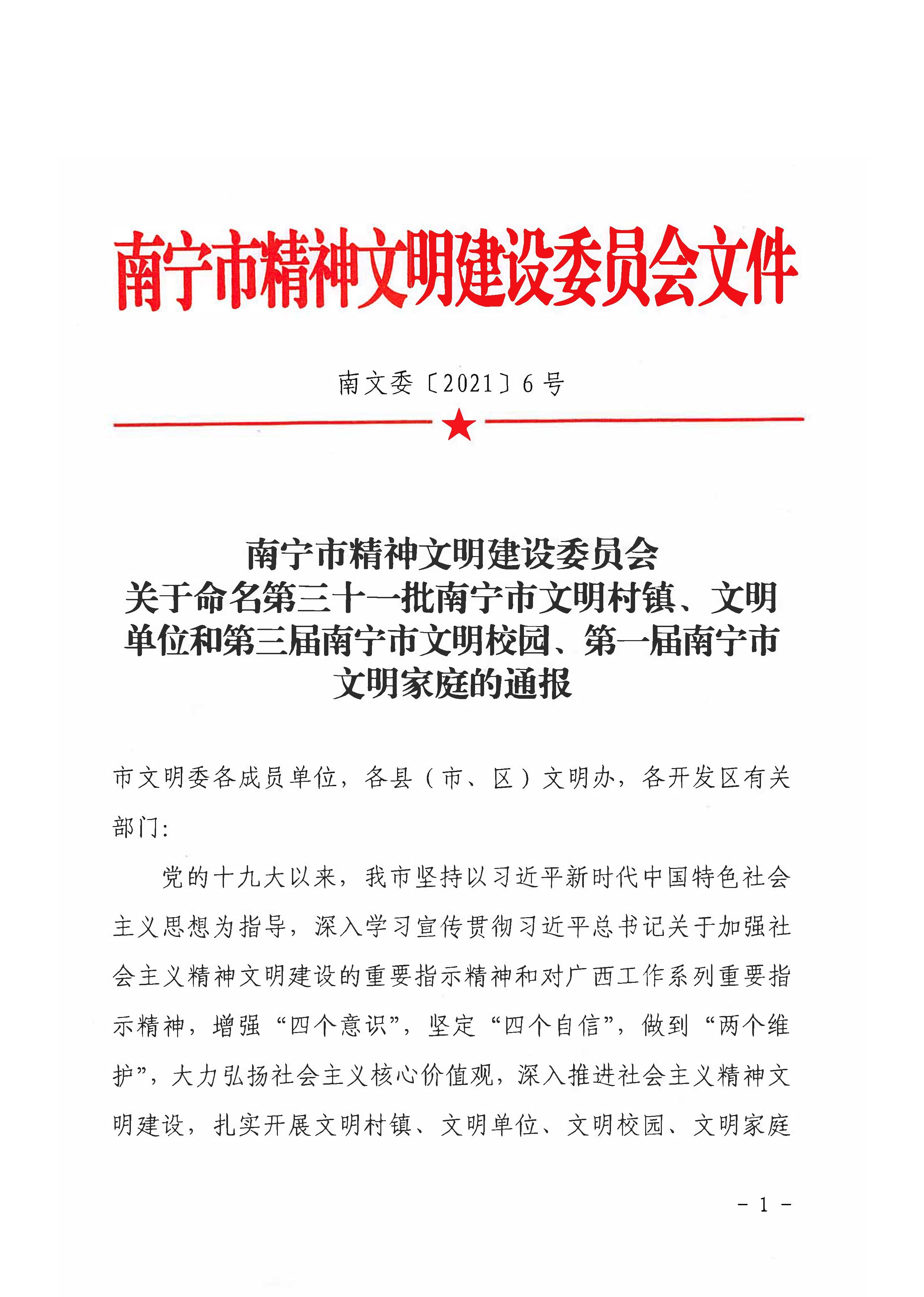 喜訊丨威寧喜獲“第三十一批南寧市文明單位”榮譽(yù)稱號(hào)