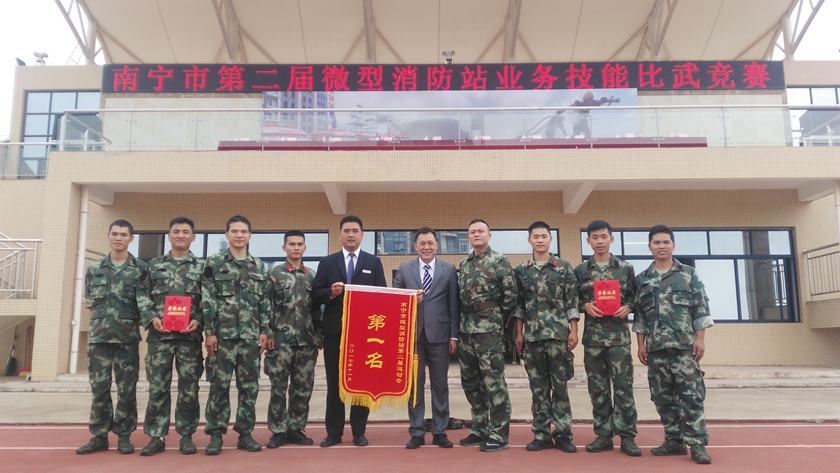 在2017年11月9日結(jié)束的南寧市第二屆微型消防站業(yè)務(wù)技能比武競(jìng)賽中,五象山莊微型消防站大顯身手,取得驕人成績(jī): 5名參賽隊(duì)員包攬全部三個(gè)比賽項(xiàng)目的第一名,獲得一個(gè)比賽項(xiàng)目的第二名,并最終勇奪團(tuán)隊(duì)第一名。