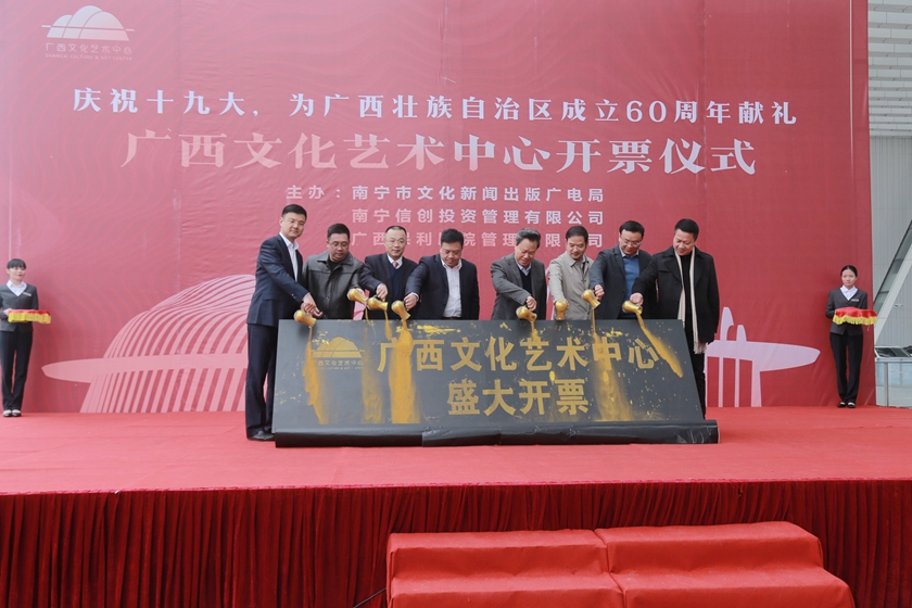 2017年11月26日上午,廣西文化藝術(shù)中心開(kāi)票儀式在廣西文化藝術(shù)中心音樂(lè)廳前平臺(tái)舉行,售票啟動(dòng)標(biāo)志著其運(yùn)營(yíng)管理工作正式開(kāi)啟。