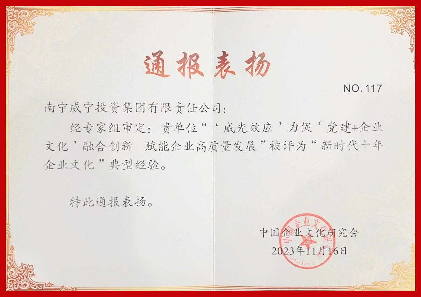 南寧威寧集團企業(yè)文化成果獲評“新時代十年企業(yè)文化”典型經驗