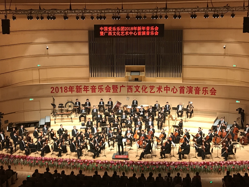 高雅藝術(shù)放華彩,音樂盛會賀新年。1月3日晚,2018年新年音樂會在新落成的廣西文化藝術(shù)中心音樂廳舉行,這是該中心竣工后首次舉行公演。