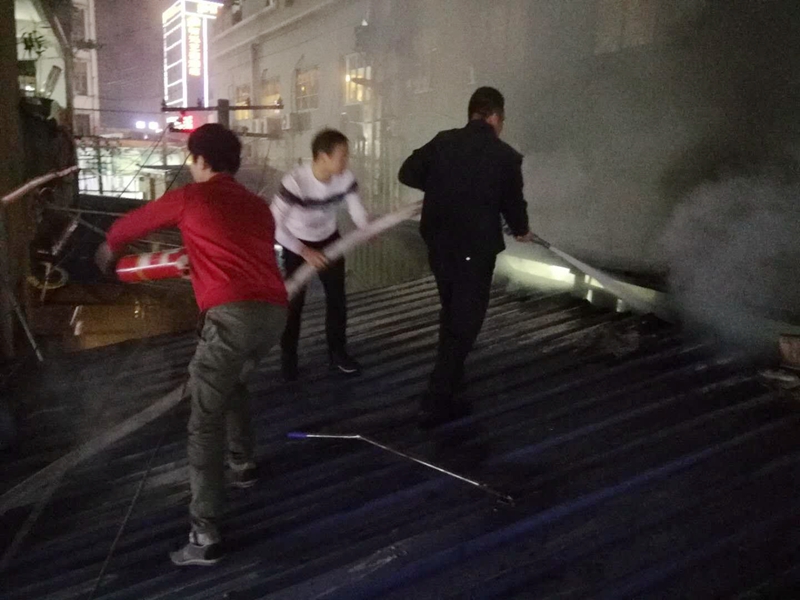 “這是哪里冒出來的濃煙?”3月25日晚,正在農(nóng)院路3號市場例行巡查的蔬菜公司拓展分公司副經(jīng)理夏振現(xiàn)警惕地說到。一起巡查的市場管理人員廖貞才、陳發(fā)成立即行動,與夏振現(xiàn)共同找到了濃煙源頭——與市場一墻之隔的夜市美食鋪面后廚。