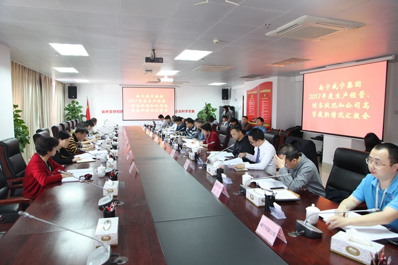 2018年3月19日,南寧威寧集團召開2017年度生產(chǎn)經(jīng)營、財務狀況和公司高管履職情況匯報會。會上,集團總經(jīng)理劉巧瑛向南寧市國有企業(yè)第三監(jiān)事會重點匯報了2017年度集團經(jīng)營業(yè)績、管理和改革發(fā)展情況、執(zhí)行財經(jīng)法規(guī)及國有資產(chǎn)管理規(guī)定情況等,并對需市政府協(xié)調(diào)解決的問題進行簡要陳述。