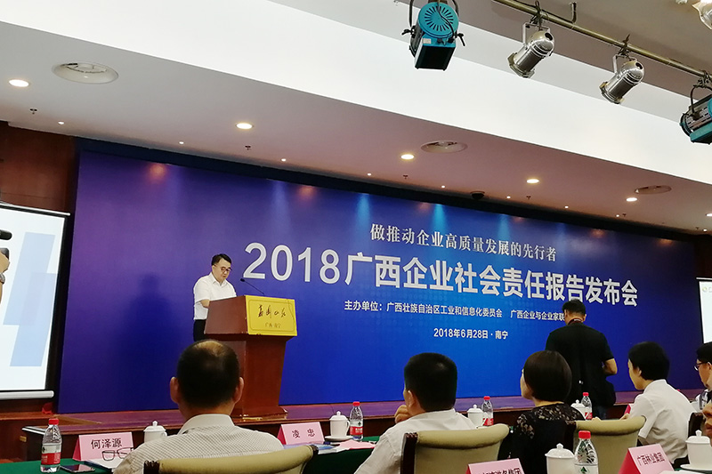 6月28日,自治區(qū)工業(yè)和信息化委員會、廣西企業(yè)與企業(yè)家聯(lián)合會在南寧舉行“2018廣西企業(yè)社會責(zé)任報告發(fā)布會”,廣西投資集團(tuán)、南寧威寧集團(tuán)等57家企業(yè)發(fā)布了2017年度社會責(zé)任報告,企業(yè)數(shù)量比上一年增加23家,創(chuàng)歷屆新高,南寧威寧集團(tuán)連續(xù)三年參加發(fā)布會。